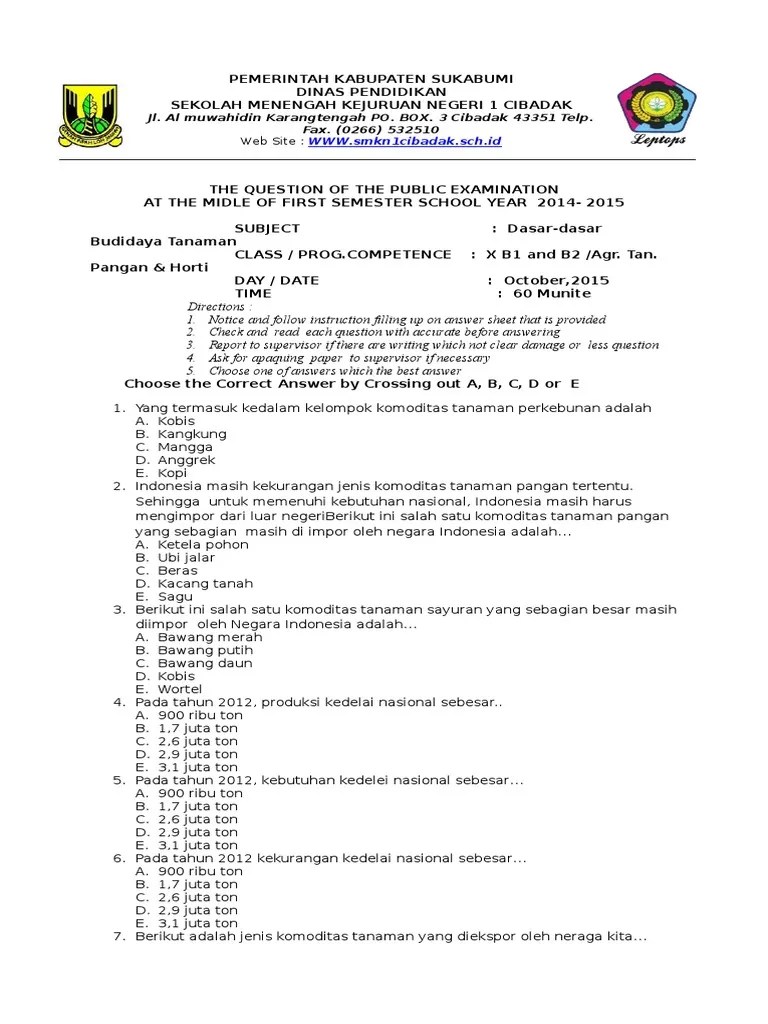 Untuk menyelamatkan lingkungan hidup maka kita harus mengatasi sampah rumah tangga yang semakin menumpuk. 23+ contoh soal bep budidaya ikan hias. Ada sekitar 80 butir soal pgpilihan gandapilgan bahasa indonesia tentang karya ilmiah dan jawabannya yang bisa adik adik jadikan referensi dalam menghadapi ujian dari guru. soal budidaya tanaman tanaman pangan posted: The research behind the writing is always 100% original, and the writing is guaranteed free of plagiarism.